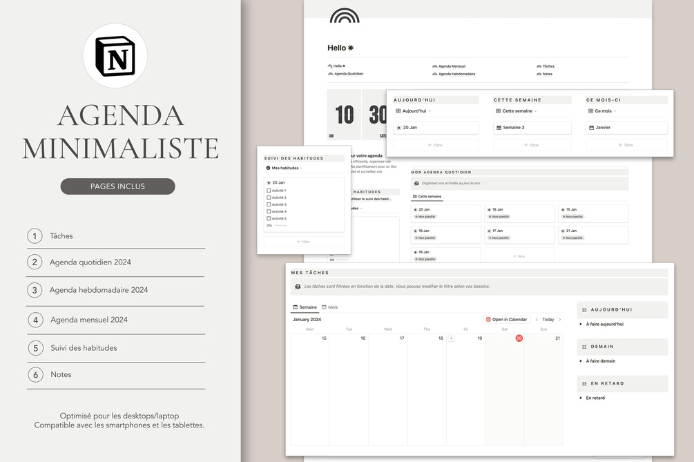 Simplifiez votre vie en planifiant toutes vos tâches quotidiennes, hebdomadaires ou mensuelles au même endroit. Libérez-vous de la désorganisation en consolidant votre emploi du temps, vos tâches et vos notes dans un espace unique. Gérez votre vie personnelle et/ou professionnelle de manière transparente et efficace grâce à cet outil tout-en-un.